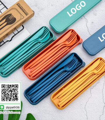 ชุดช้อนส้อมตะเกียบฟางข้าวสาลี พกพา
